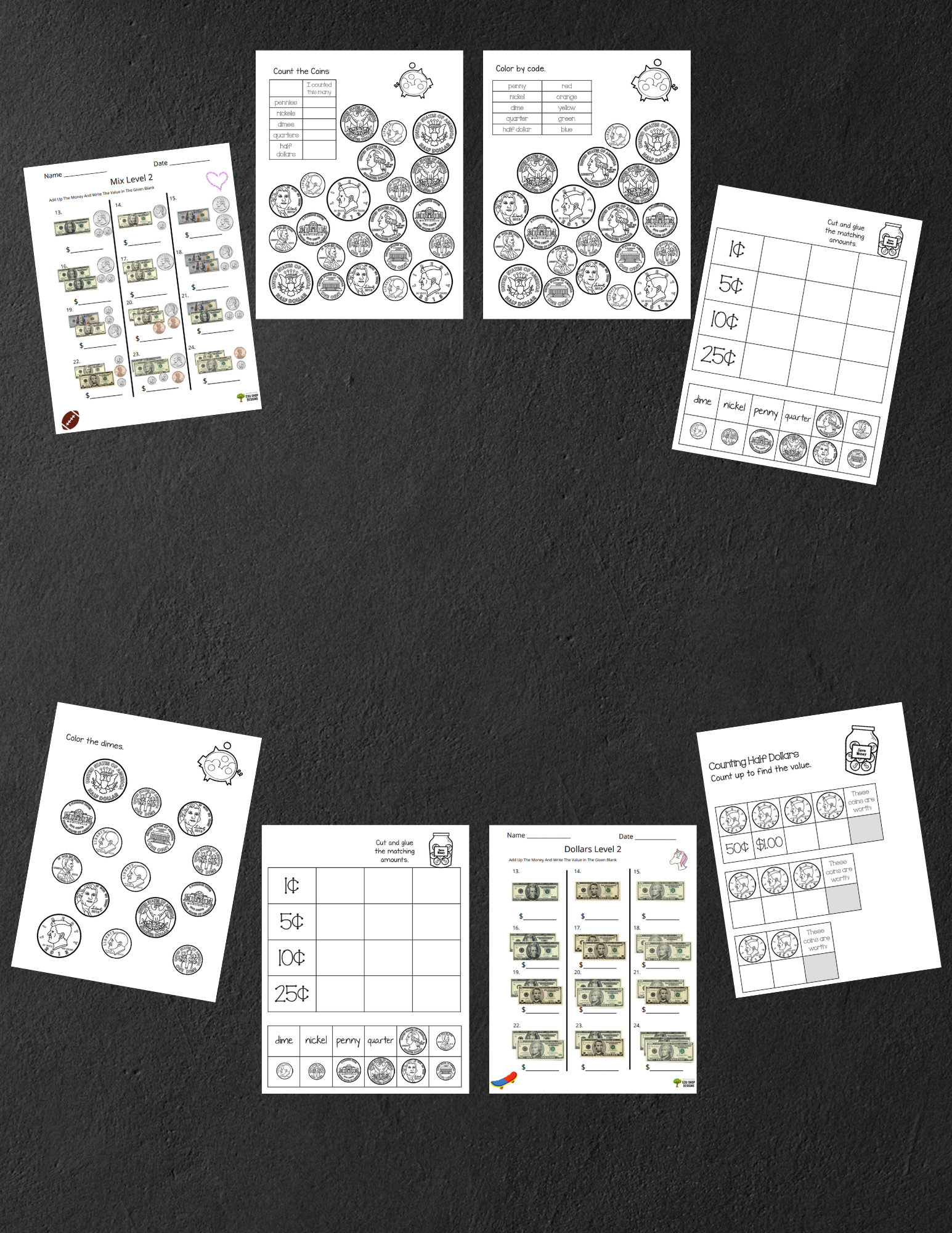 2nd Grade Money Worksheets: 50 Pages of Fun Coin Dollar Counting