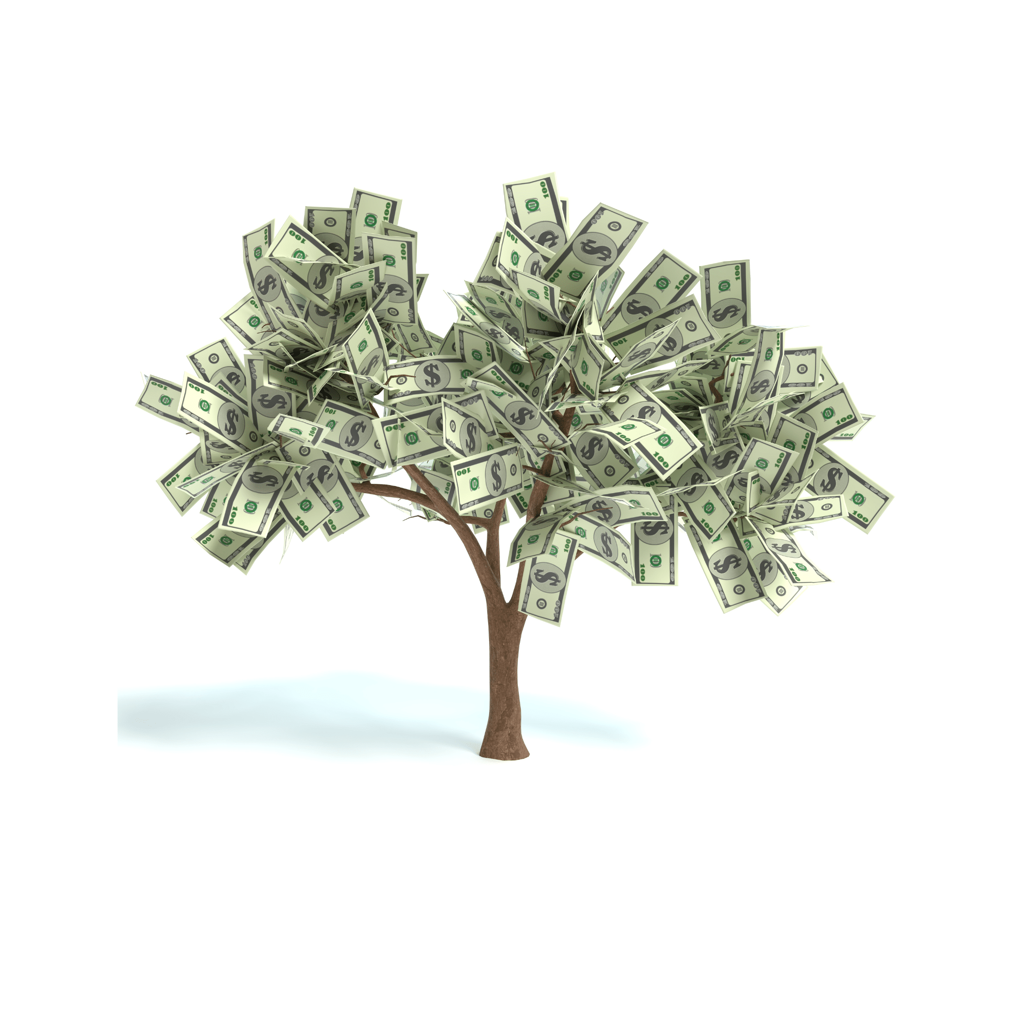 Big pile of US dollar notes a lot of money over transparent background
