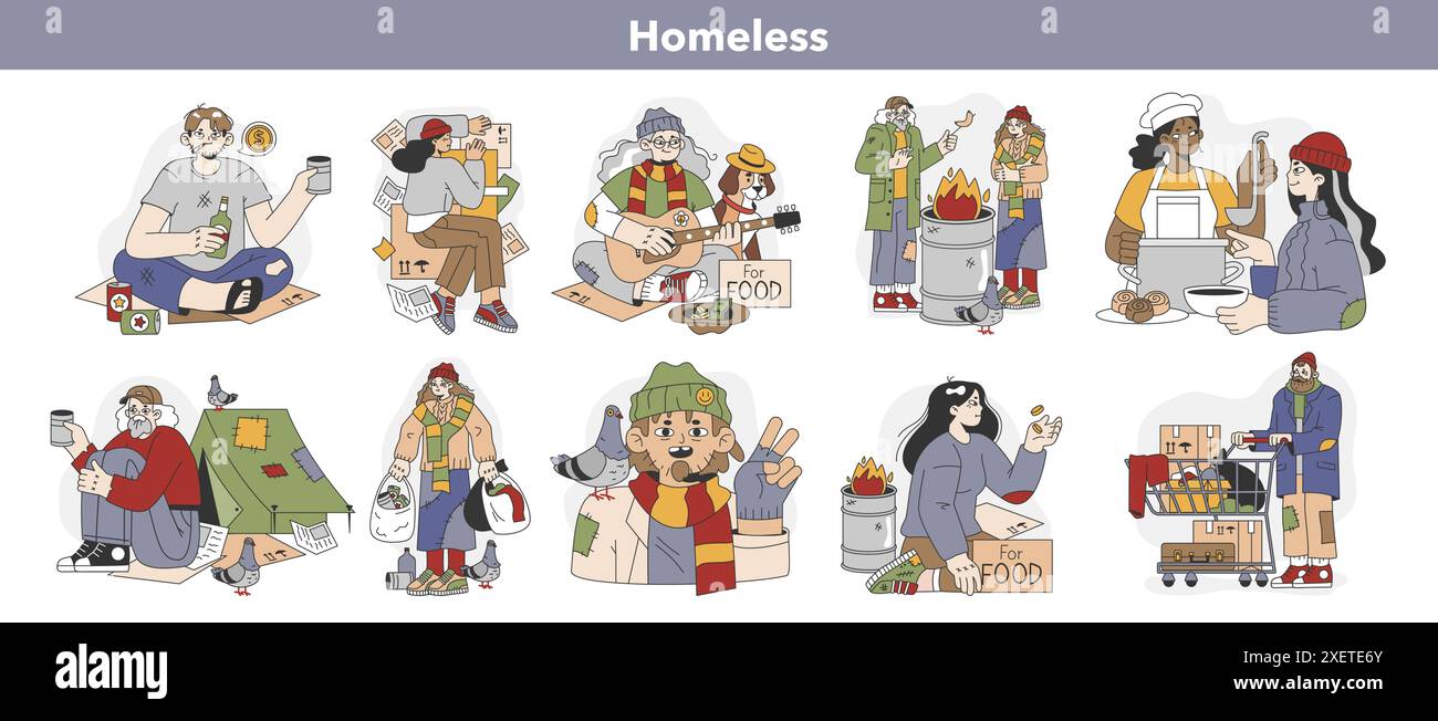 Homeless Male Beggar Wearing Ragged and Dirty Clothes Begging Money