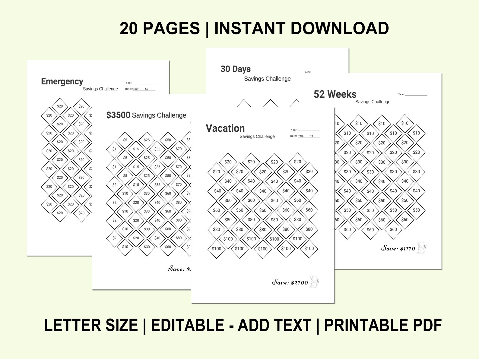 Money Saving Challenge Printable Savings Challenge Bundle Savings