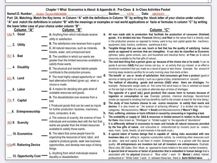Chapter 1: What is Economics Worksheet What is economics Learn