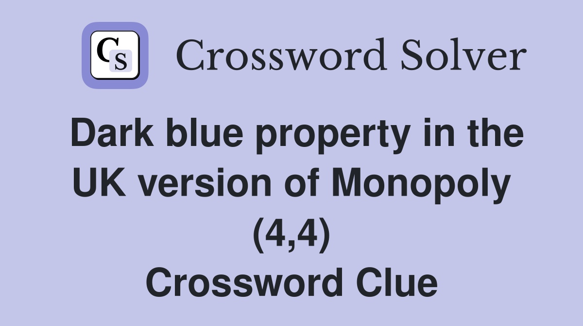 Dark blue property in the UK version of Monopoly (4 4) Crossword Clue