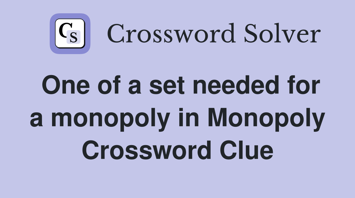 One of a set needed for a monopoly in Monopoly Crossword Clue Answers