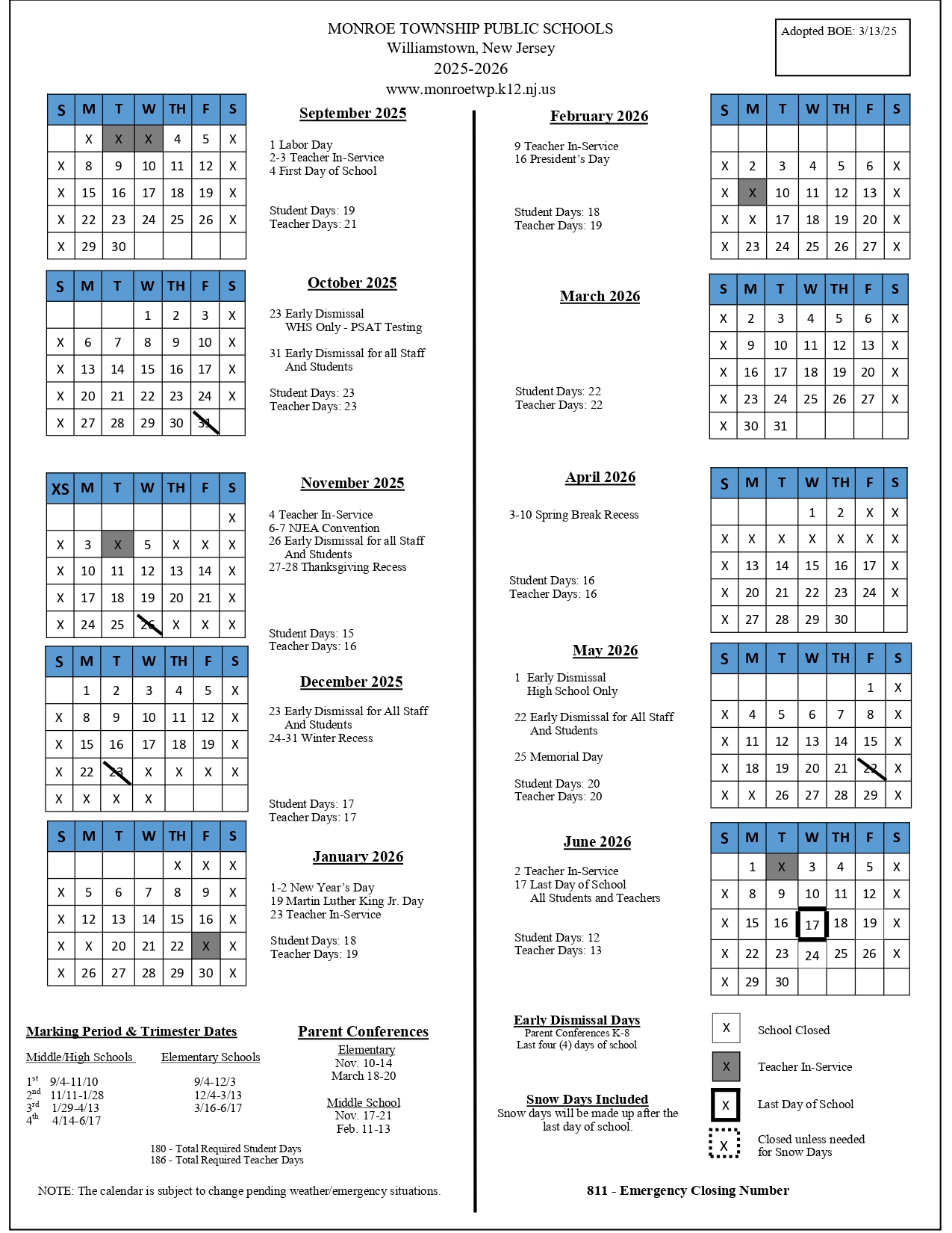 Monroe Township Public school calendar 25 26 Revised PDF EduCounty