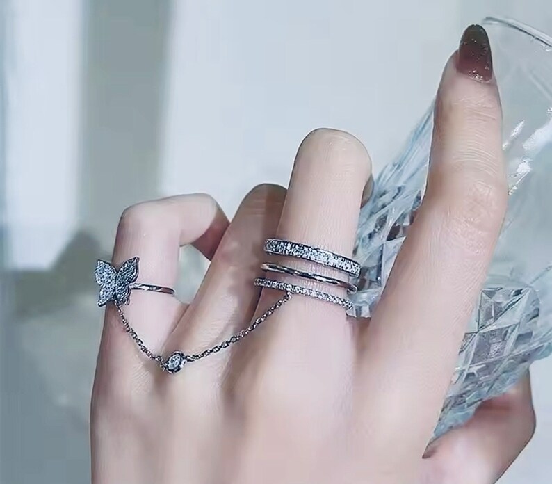 Adjustable Catch Me If You Can Butterfly Interlock Chain Rings Etsy