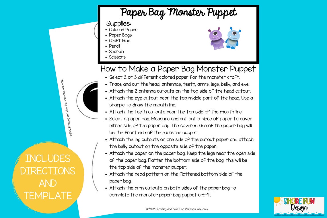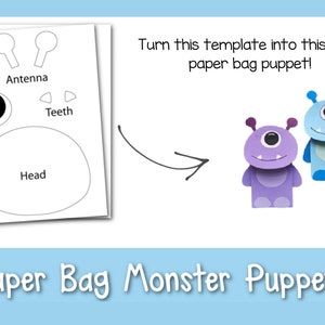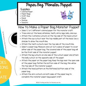 Monster Paper Bag Puppet Craft Template With Directions Etsy