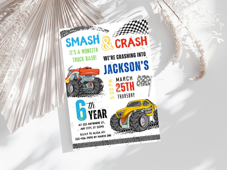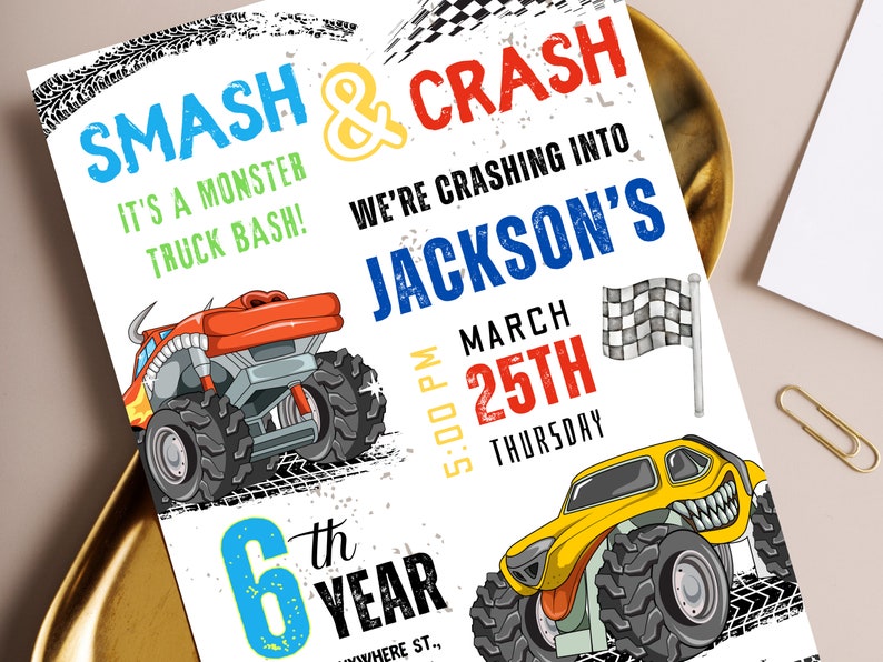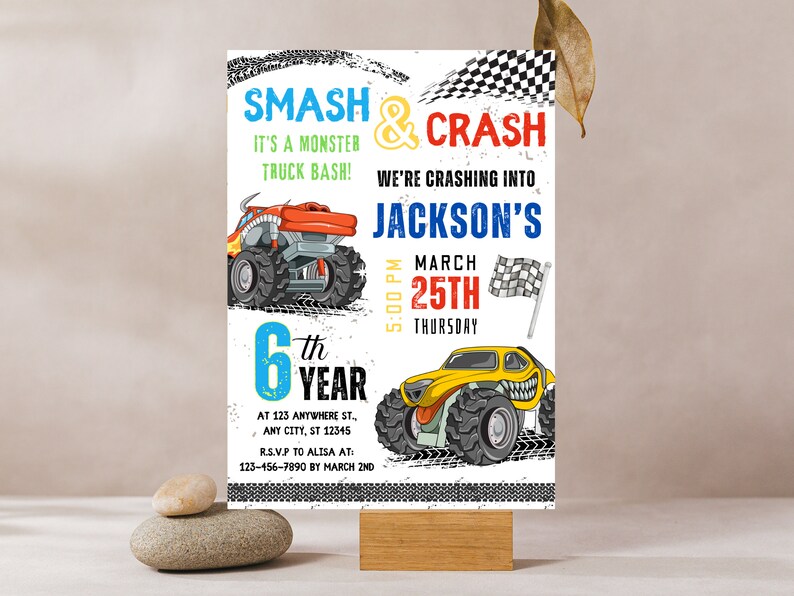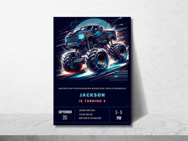 Monster jam customizable invite template boy instant download share or