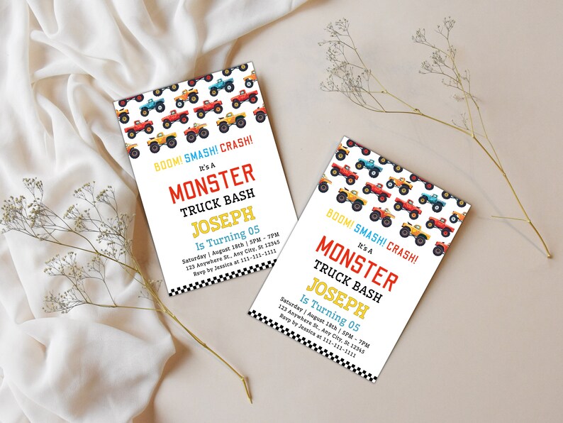 EDITABLE Monster Truck Birthday Invitation Monster Trucks Invitation