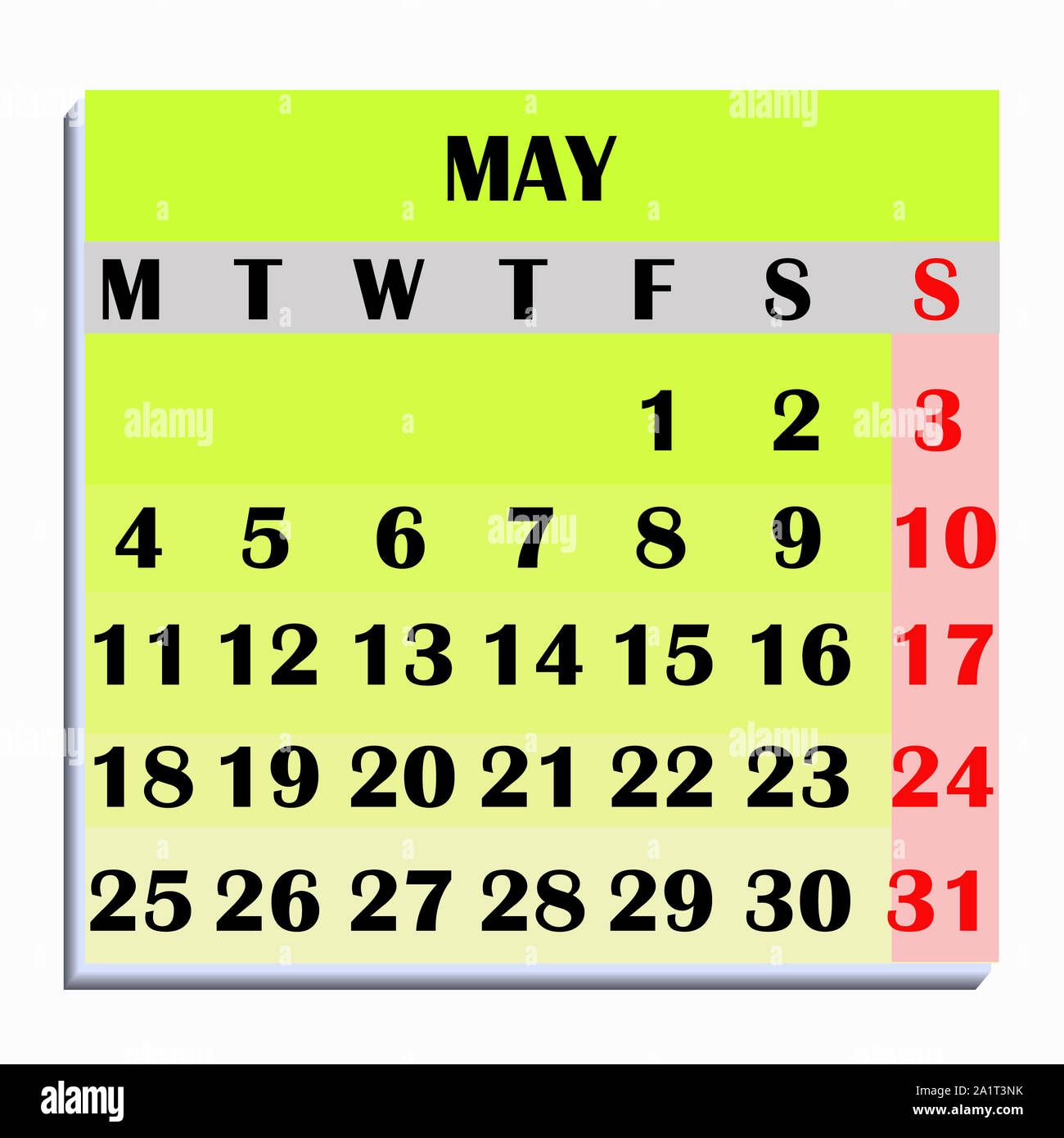 Calendar Card for the Month of May Stock Illustration Illustration of
