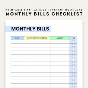 Monthly Bill Payment Tracker Printable Bill Pay Checklist 43% OFF