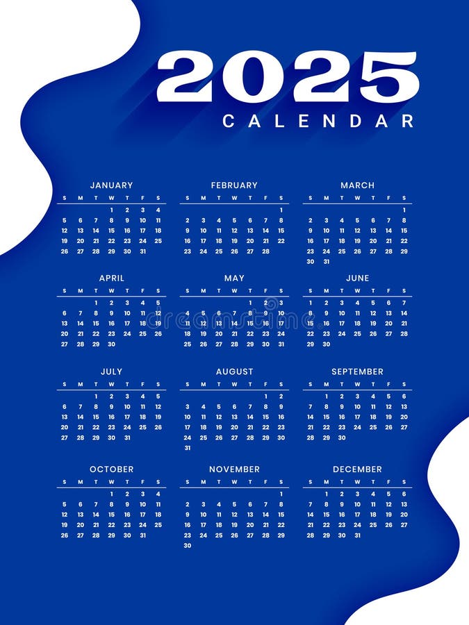Business Style 2025 Monthly Calendar Template Printable Design Stock