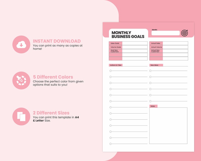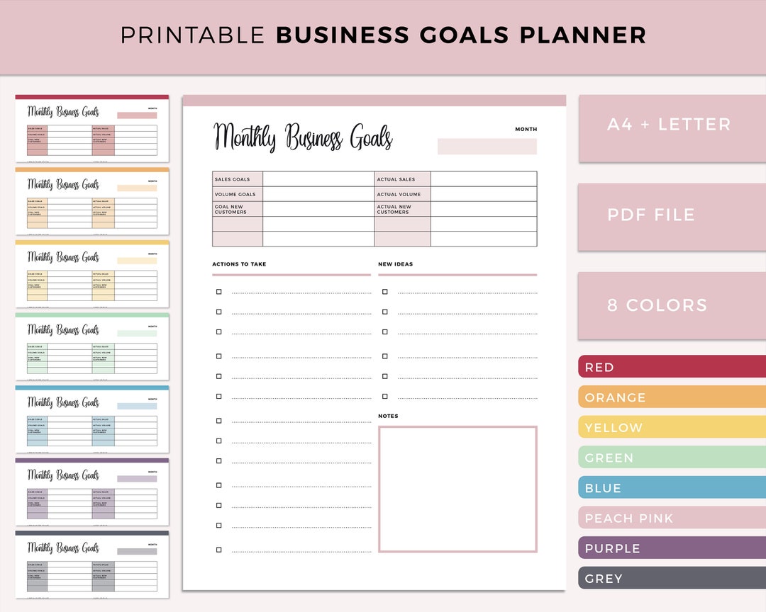 Printable Monthly Business Goals Sheet Digital Business Planner direct
