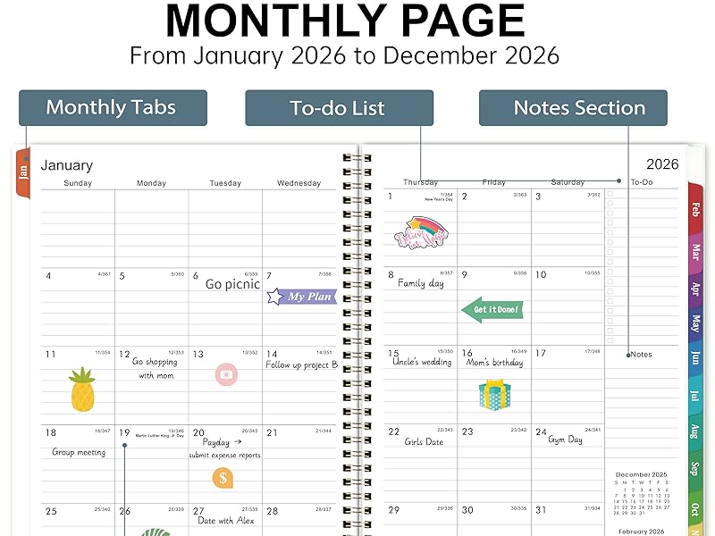 Amazon com : 2026 Planner 2026 Calendar Planner Jan 2026 Dec