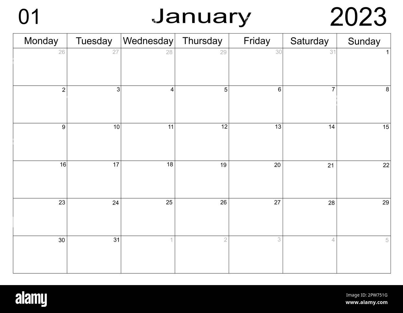 Planner January 2023 Schedule Month Monthly Stock Illustration
