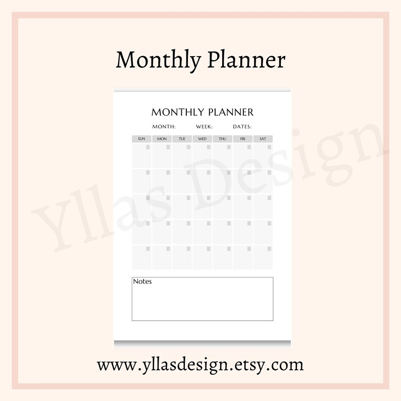 Undated Monthly Planner Printable PDF Minimalist Monthly Calendar