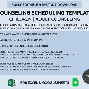 Counseling Scheduling Template for Excel and Google Sheets Printable