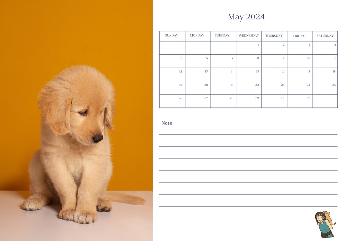 2024 Dog Digital Calendar 2024 Monthly Calendar Goodnotes Monthly