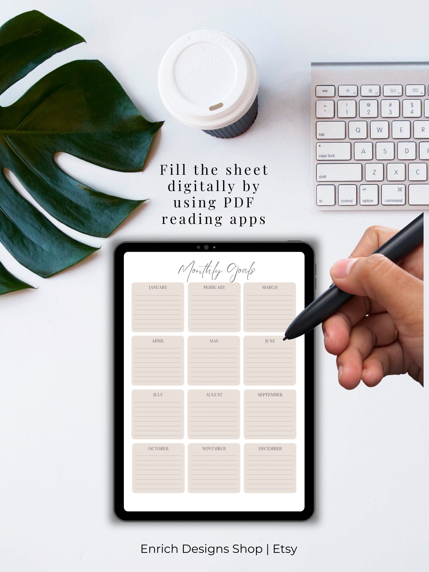 Monthly Goals Template Monthly Goal Progress Tracker Simple Etsy UK