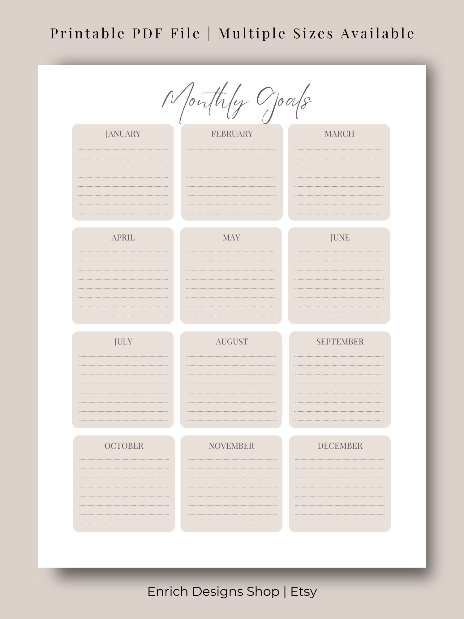 Monthly Goals Tracker Template Goal Progress Tracker Goal Etsy Australia
