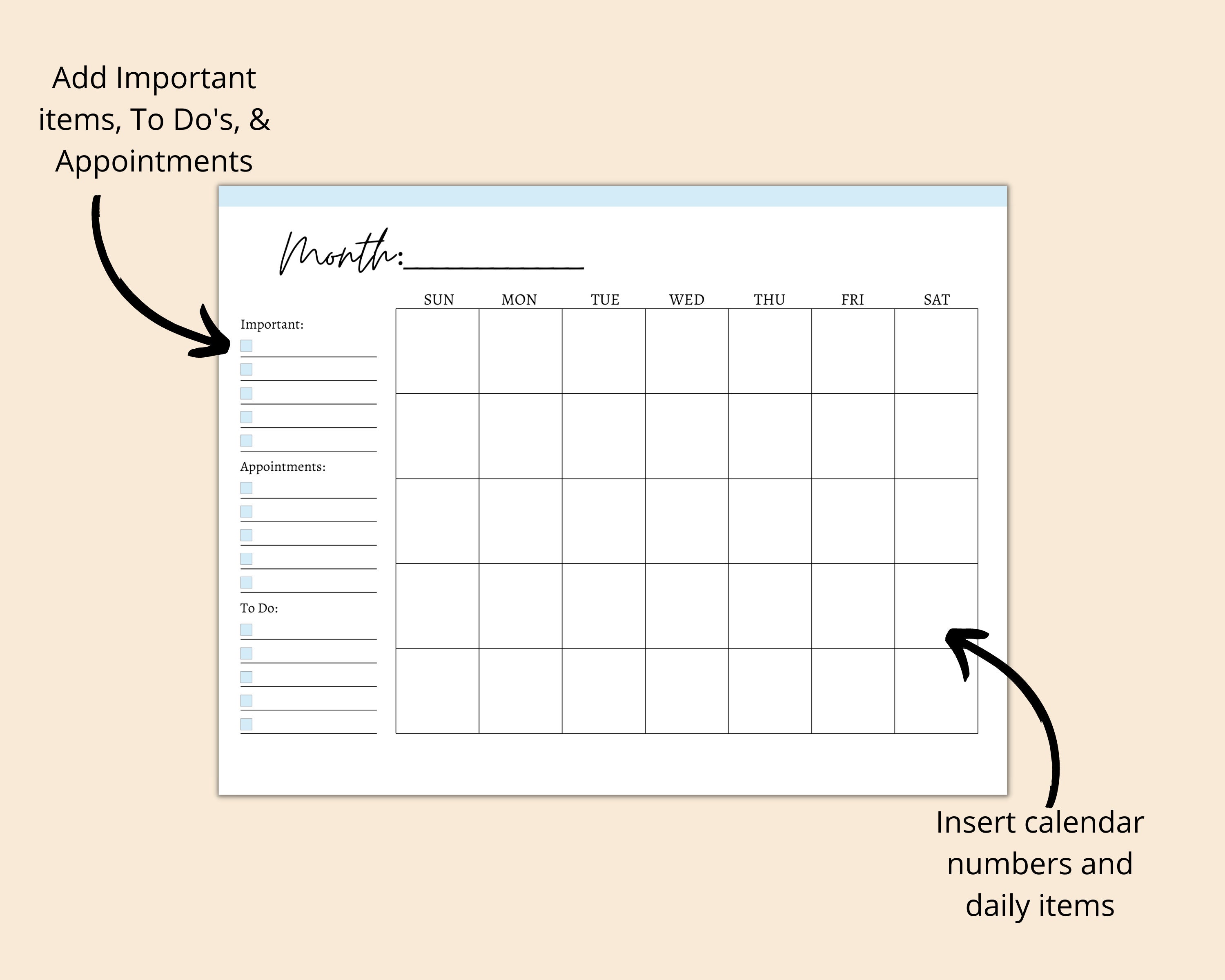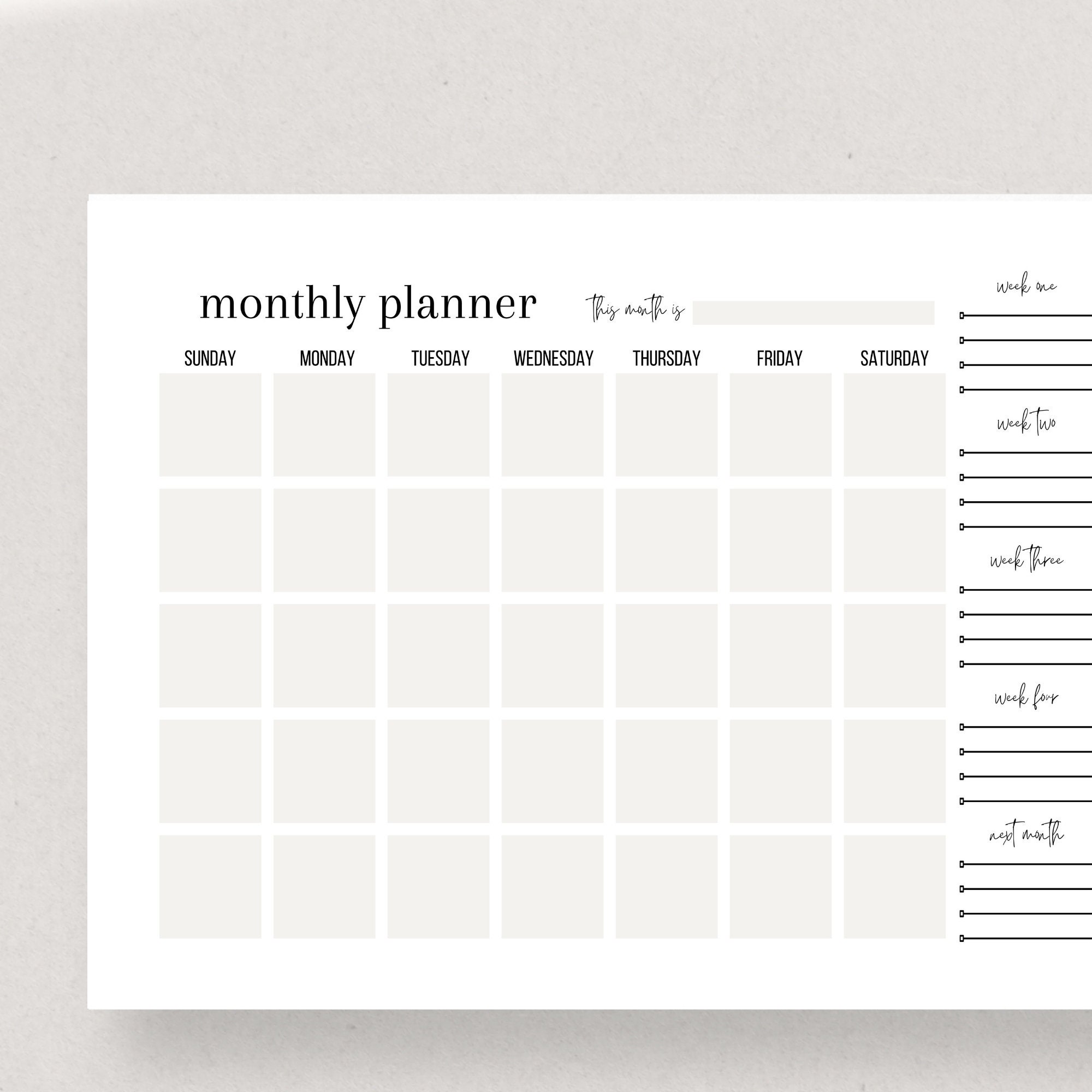 Monthly Planner PRINTABLE to Do List Simple Modern Monthly Planning