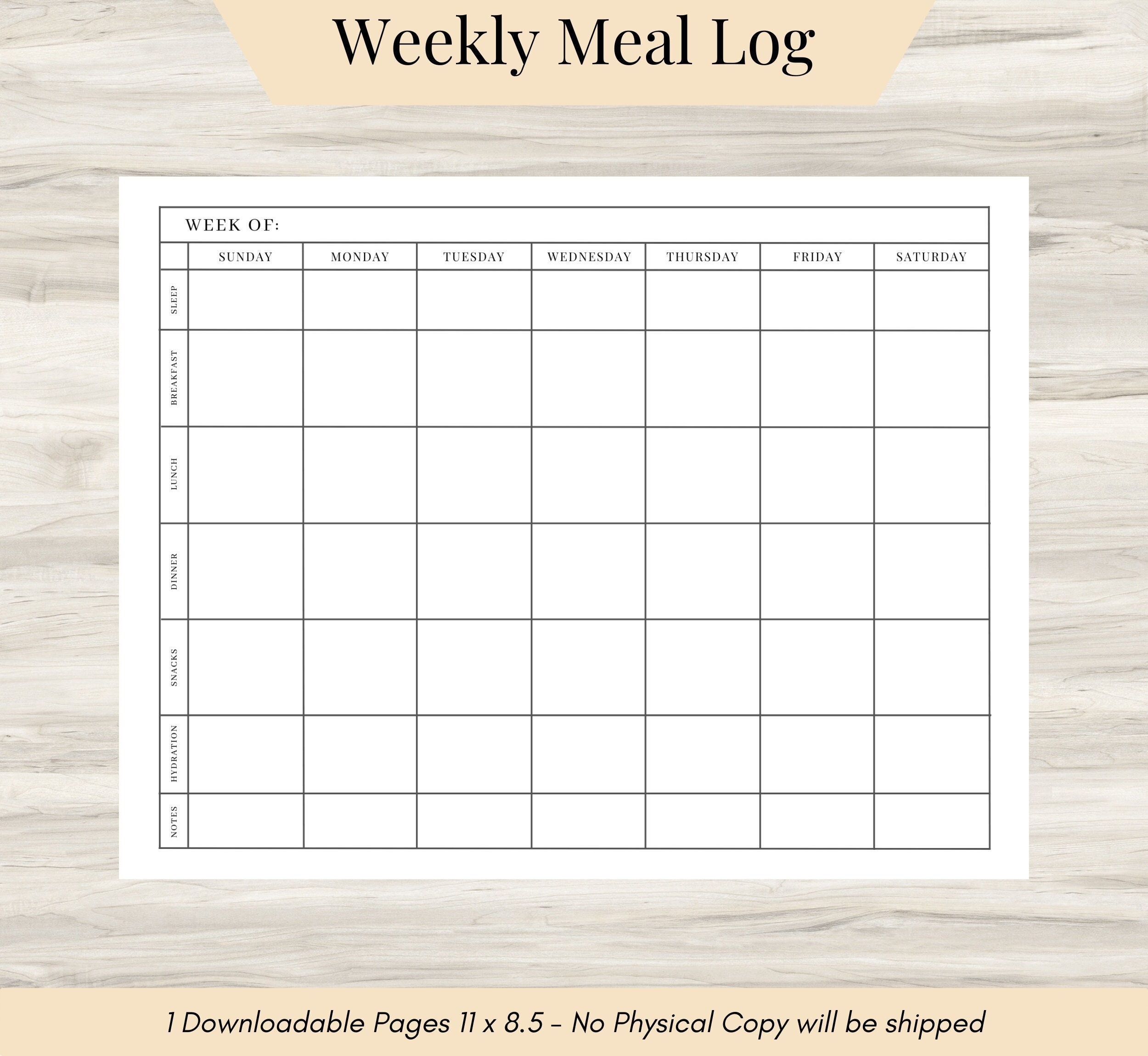 Weekly Meal Log Printable Weekly Meal Prep Weekly Meal Etsy