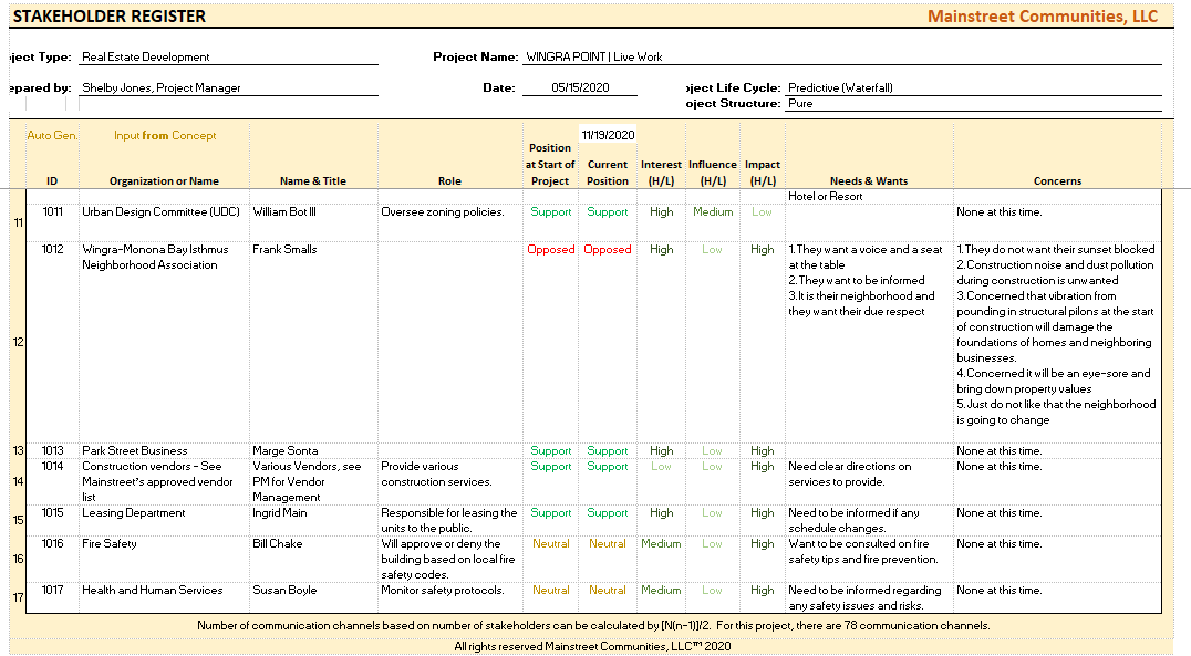 Solved STAKEHOLDER REGISTER Mainstreet Communities LLC ject Chegg com