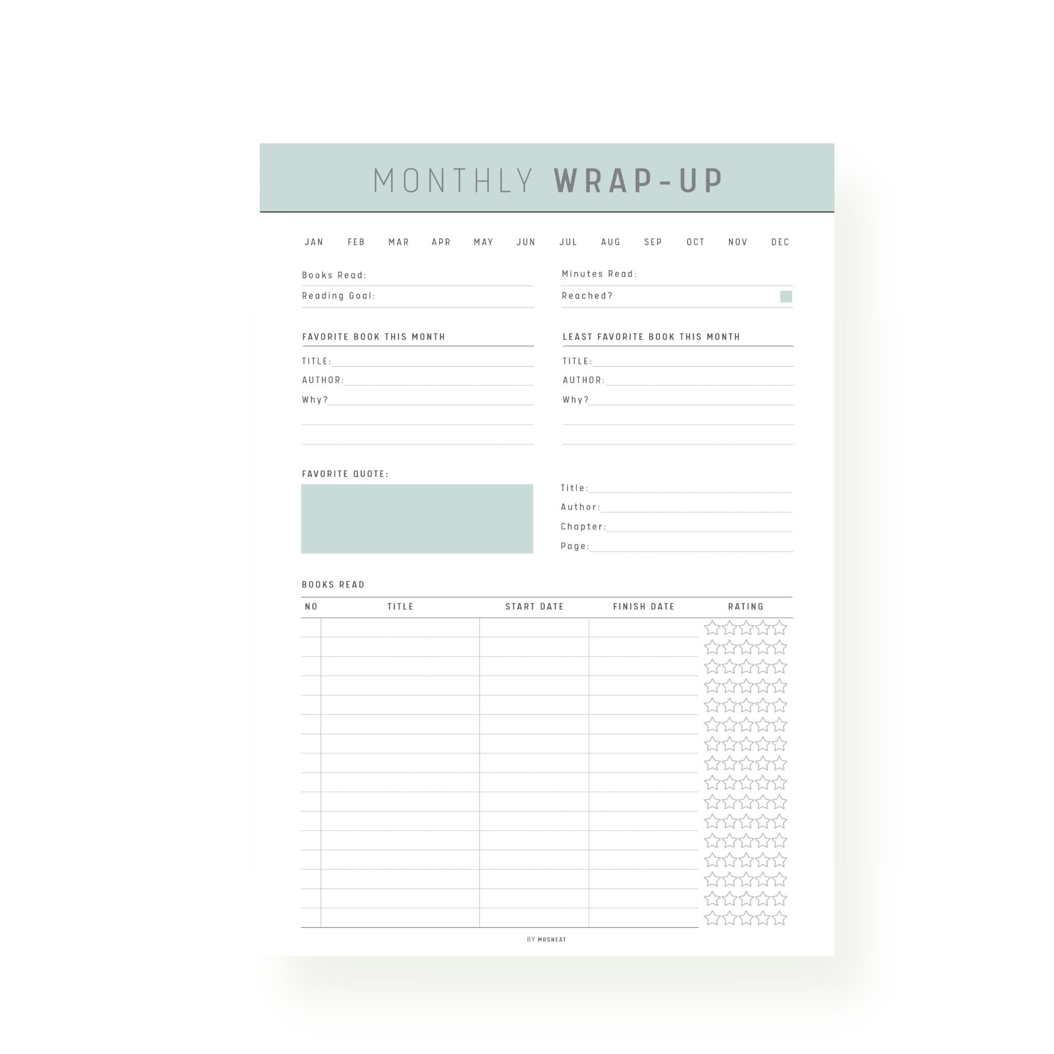 Monthly Reading Wrap Up Template M222 mrsneat
