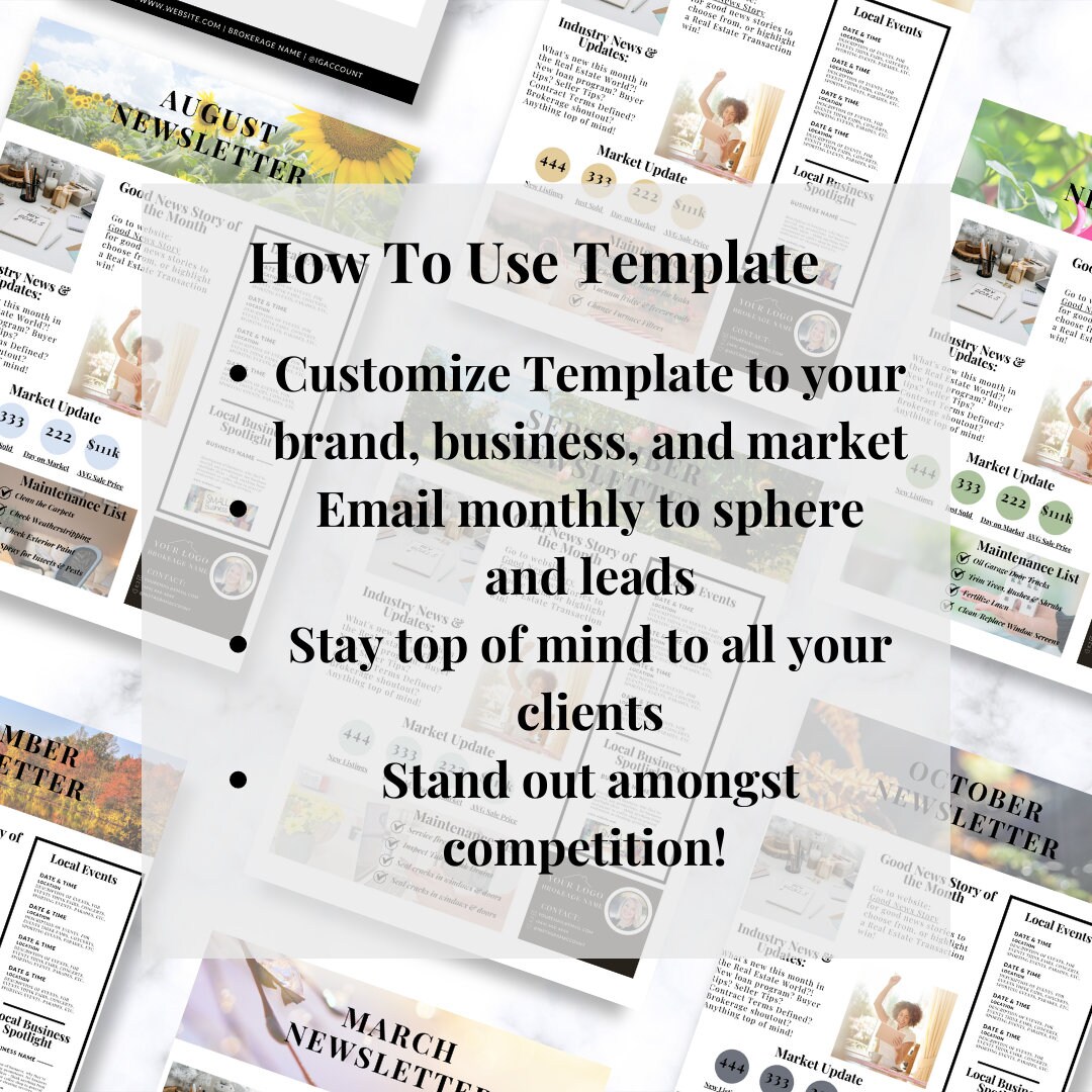 Real Estate Monthly Newsletter Realtor Marketing 12 Months Market