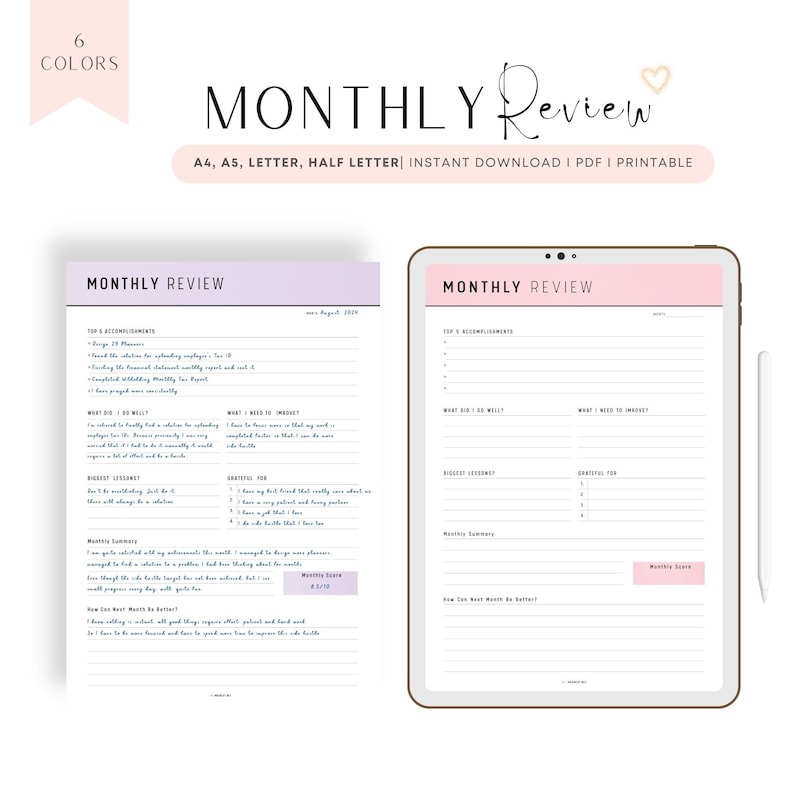 Monthly Review Template Printable A4 A5 Letter Half Letter PDF 6