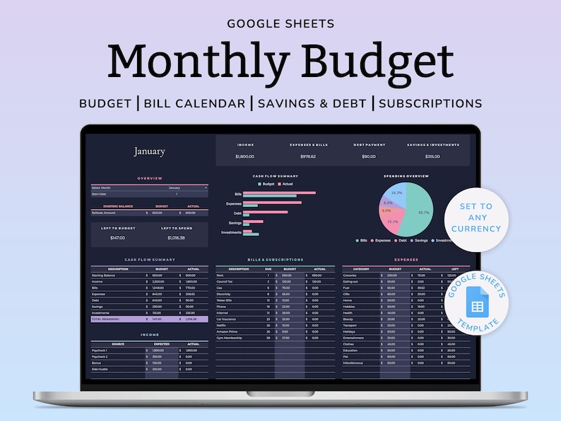 Monthly Budget Spreadsheet Google Sheets Dark Mode Budget Planner