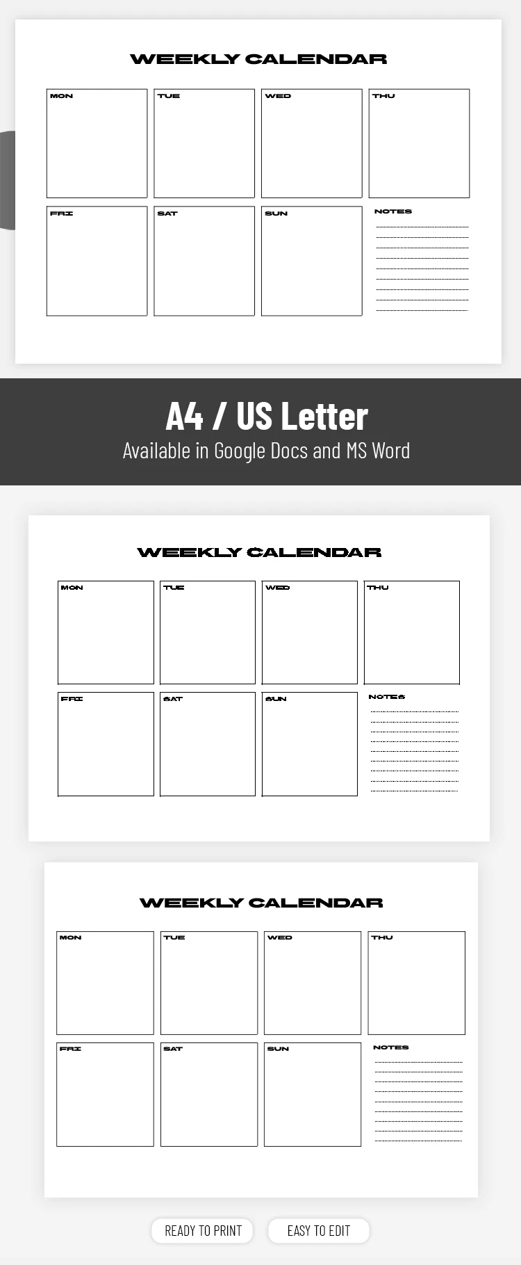Free Minimal Blank Weekly Calendar Template in Google Docs and