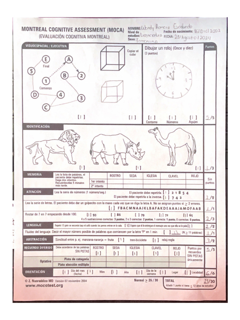 Montreal Cognitive Assessment (MOCA) Wikimedicine