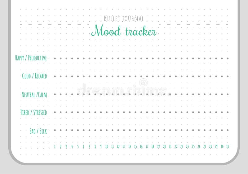 Mood Tracker Chart Template for 31 Days of a Month Stock Vector