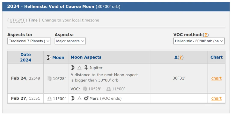 Lunar Phase Calendar Monthly Moon Aspects Online Astrology