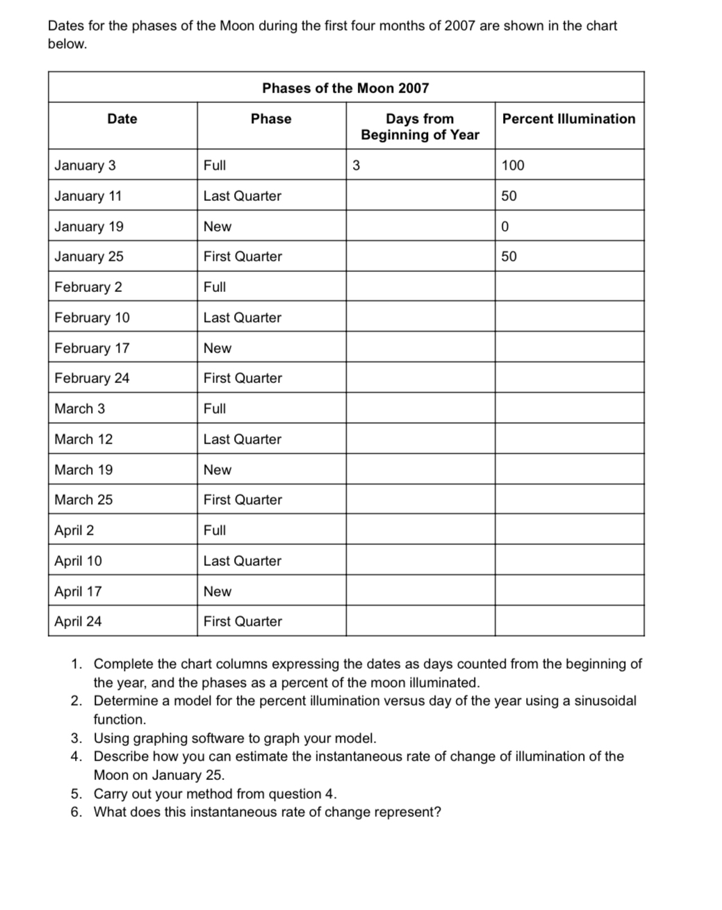 Dates for the phases of the Moon during the first Chegg com