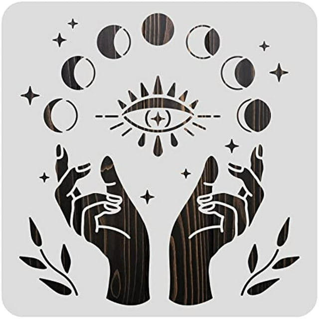 30x30cm Plastic Cutouts Painting Template Hand Moon Phase Eye Pattern