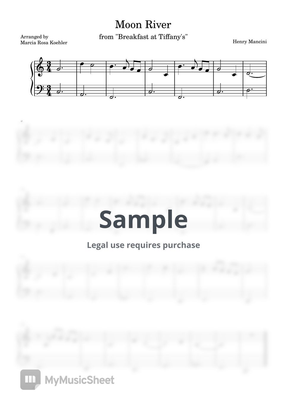 Henry Mancini Moon River (Easy Piano) Sheet Music by Marcia Rosa Koehler