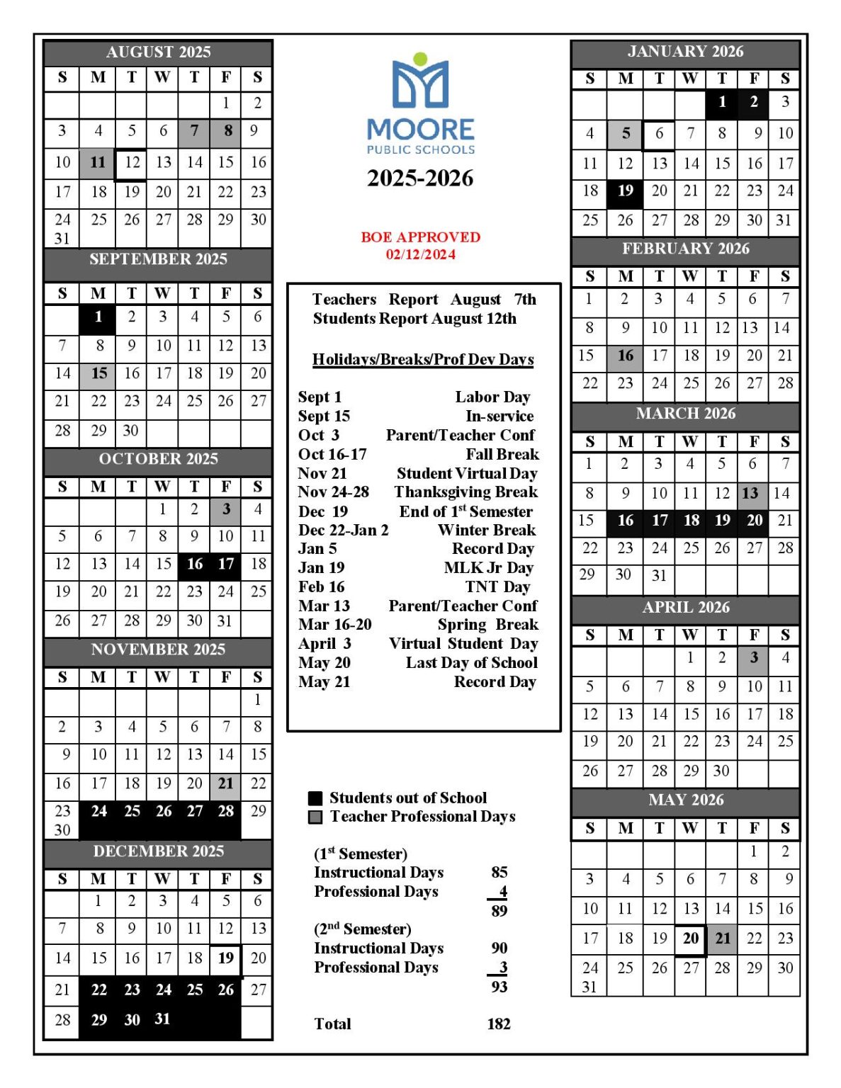 Moore Schools Calendar 2025 2026 in PDF Holiday Breaks
