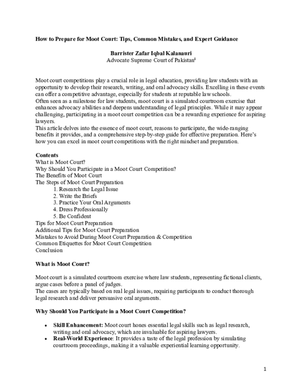 (PDF) How to Prepare for Moot Court: Tips Common Mistakes and Expert
