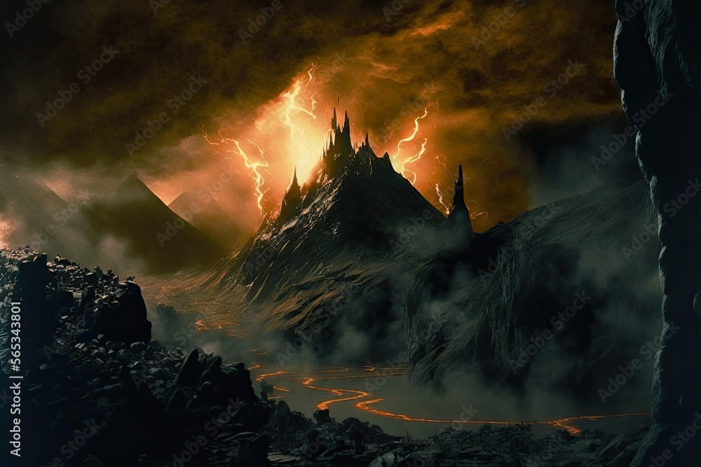 Concept art illustration of Mordor land Mount Doom volcano in Mordor