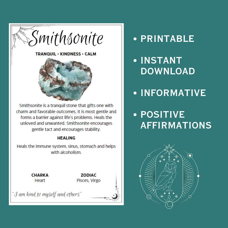 100 Crystal Meaning Cards Positive Affirmations Printable Gemstone