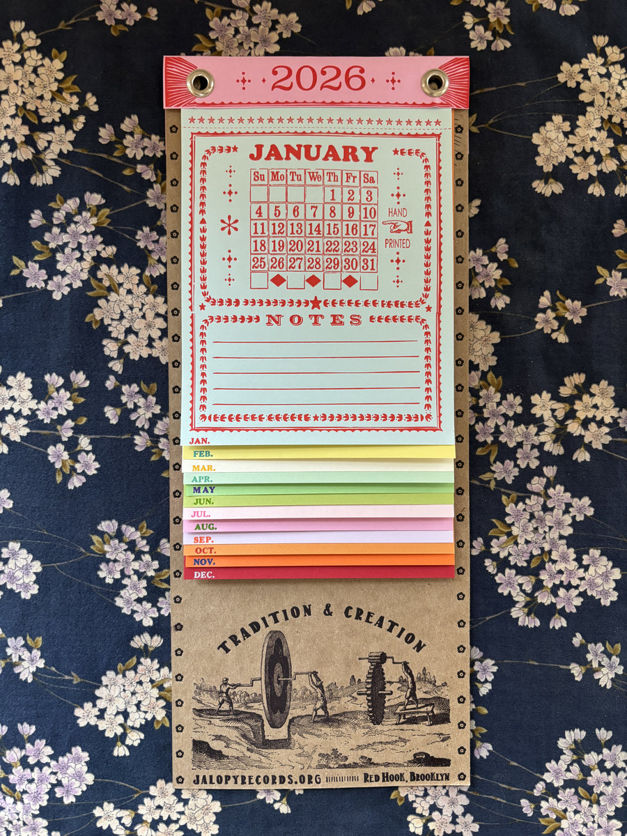 Limited Edition 2026 Letterpress Calendar Jalopy Records