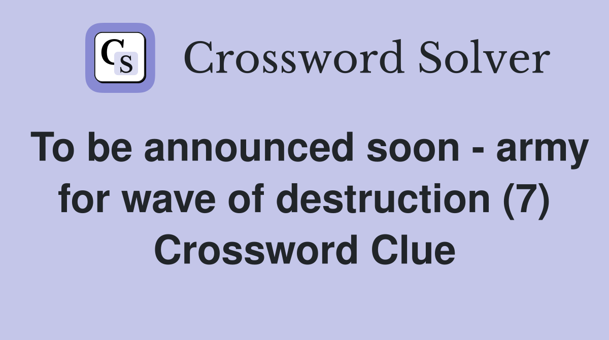 To be announced soon army for wave of destruction (7) Crossword