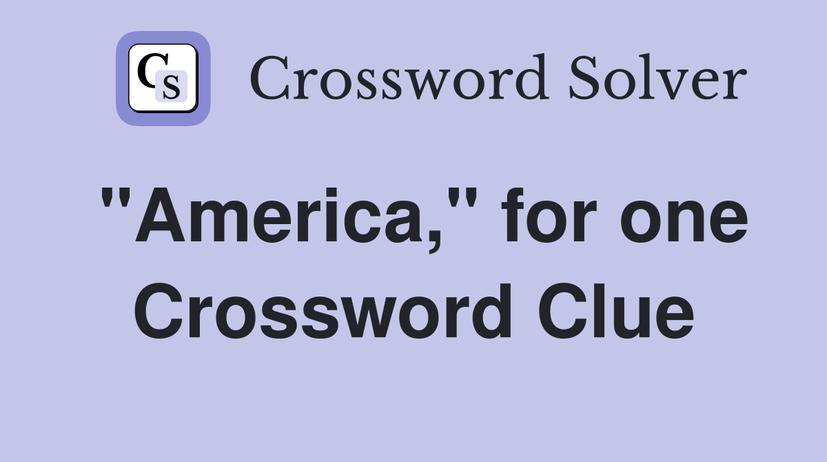 quot America quot for one Crossword Clue Answers Crossword Solver