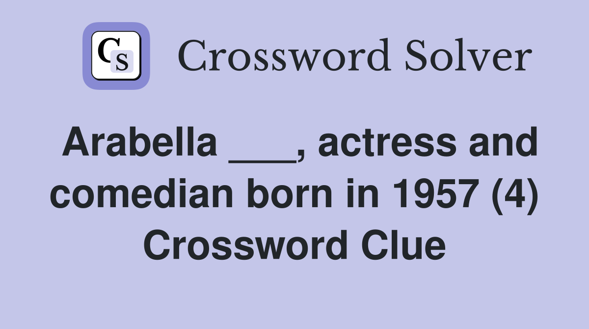 Arabella actress and comedian born in 1957 (4) Crossword Clue
