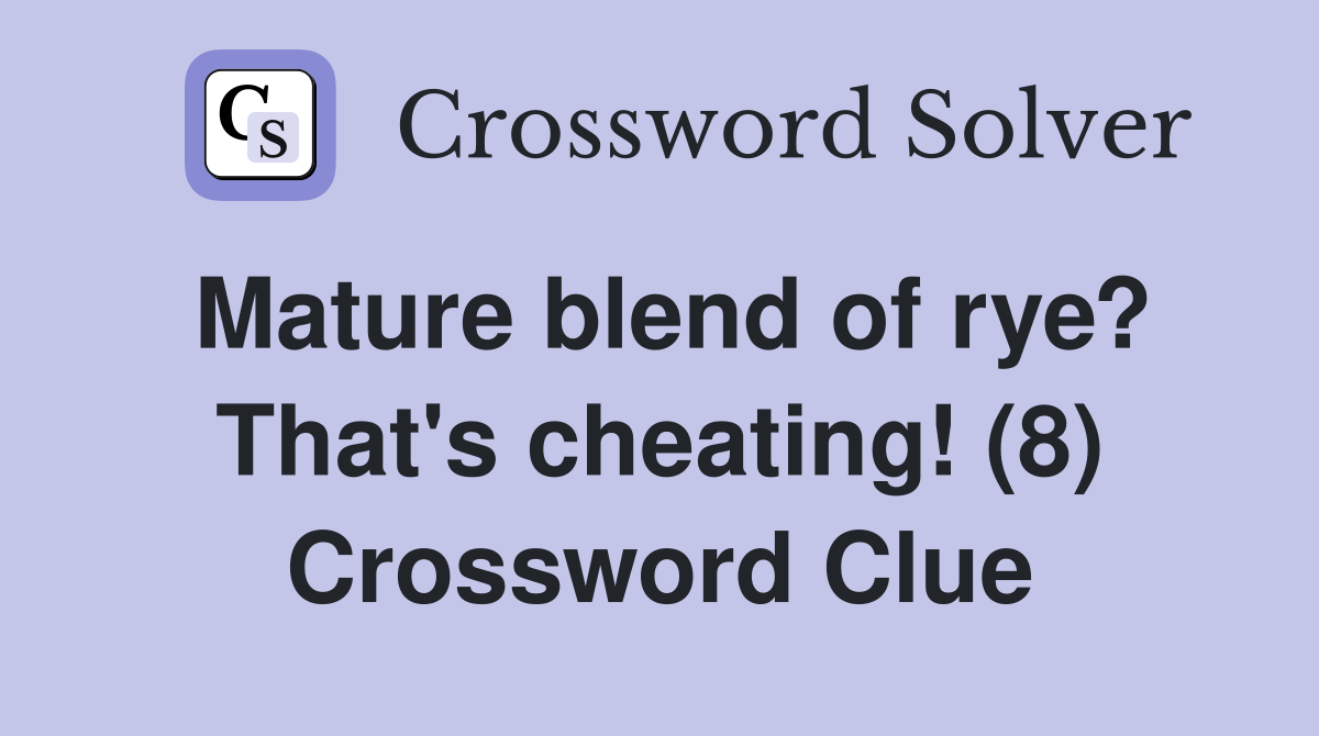 Mature blend of rye? That #39 s cheating (8) Crossword Clue Answers