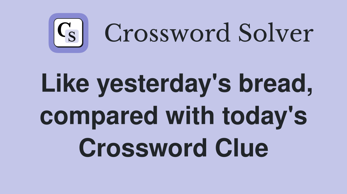 Like yesterday #39 s bread compared with today #39 s Crossword Clue Answers