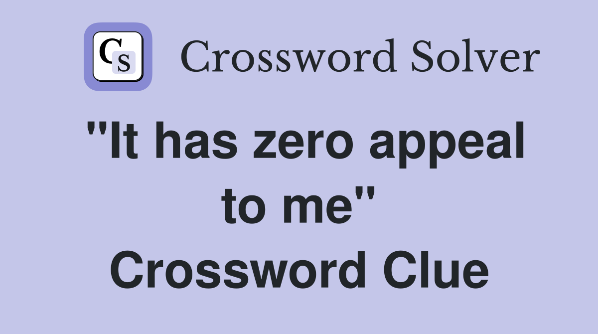 quot It has zero appeal to me quot Crossword Clue Answers Crossword Solver