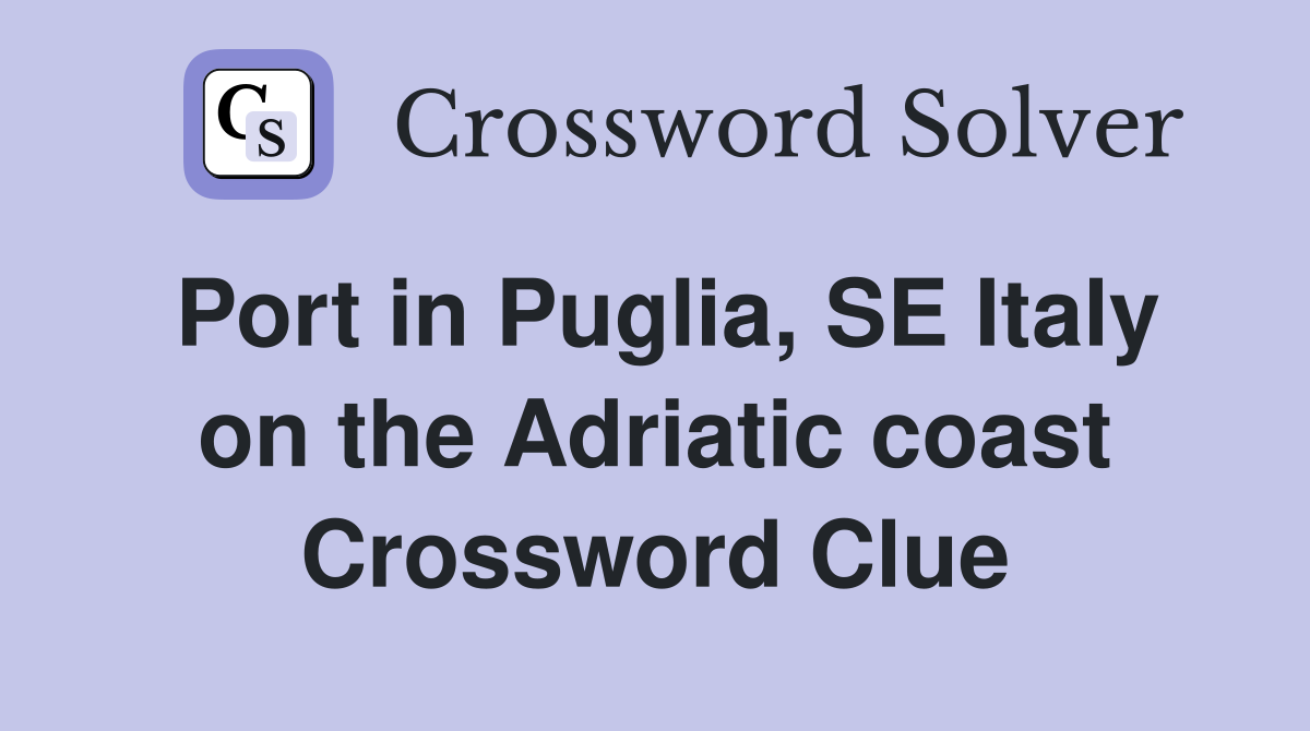 Port in Puglia SE Italy on the Adriatic coast Crossword Clue Answers