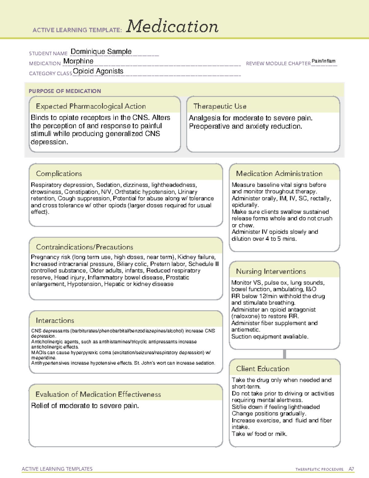 ATI med template morphine ACTIVE LEARNING TEMPLATES THERAPEUTIC